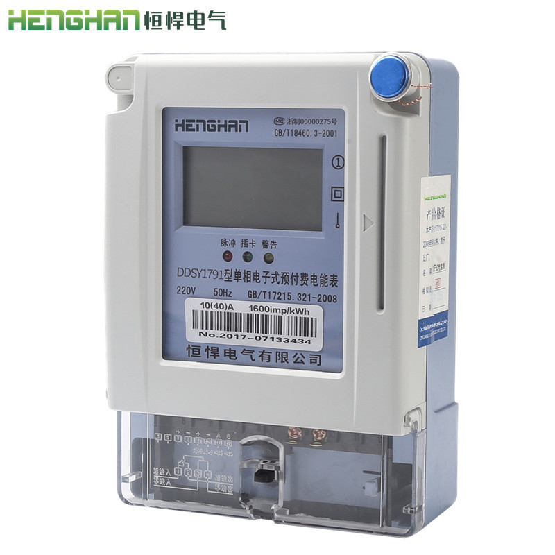 • 恒悍單相預(yù)付費(fèi)電表型號證...